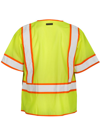 This class 3 safety vest provides maximum visibility for workers exposed to inclement weather and traffic traveling above 50mph -- including roadway and railway construction, utility crews, highway surveyors and first responders. Made from 100 percent polyester Ultra-Cool mesh. Dual frontside and backside 2-inch wide reflective stripes with contrasting edges.