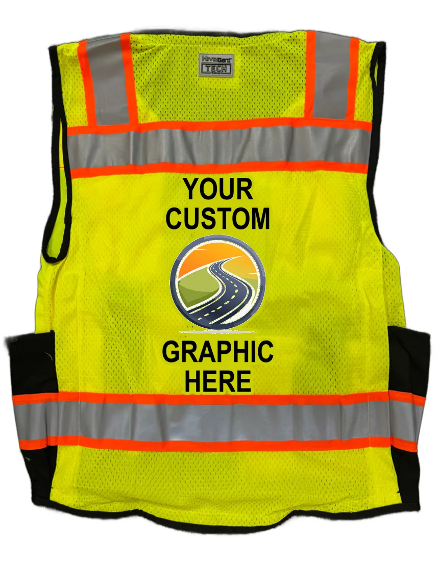 Liberty Hivizgard Tech Series Two Tone, Black Bottom Class 2 Surveyor Vest, Lime, Medium w/ Full Color Custom Graphic